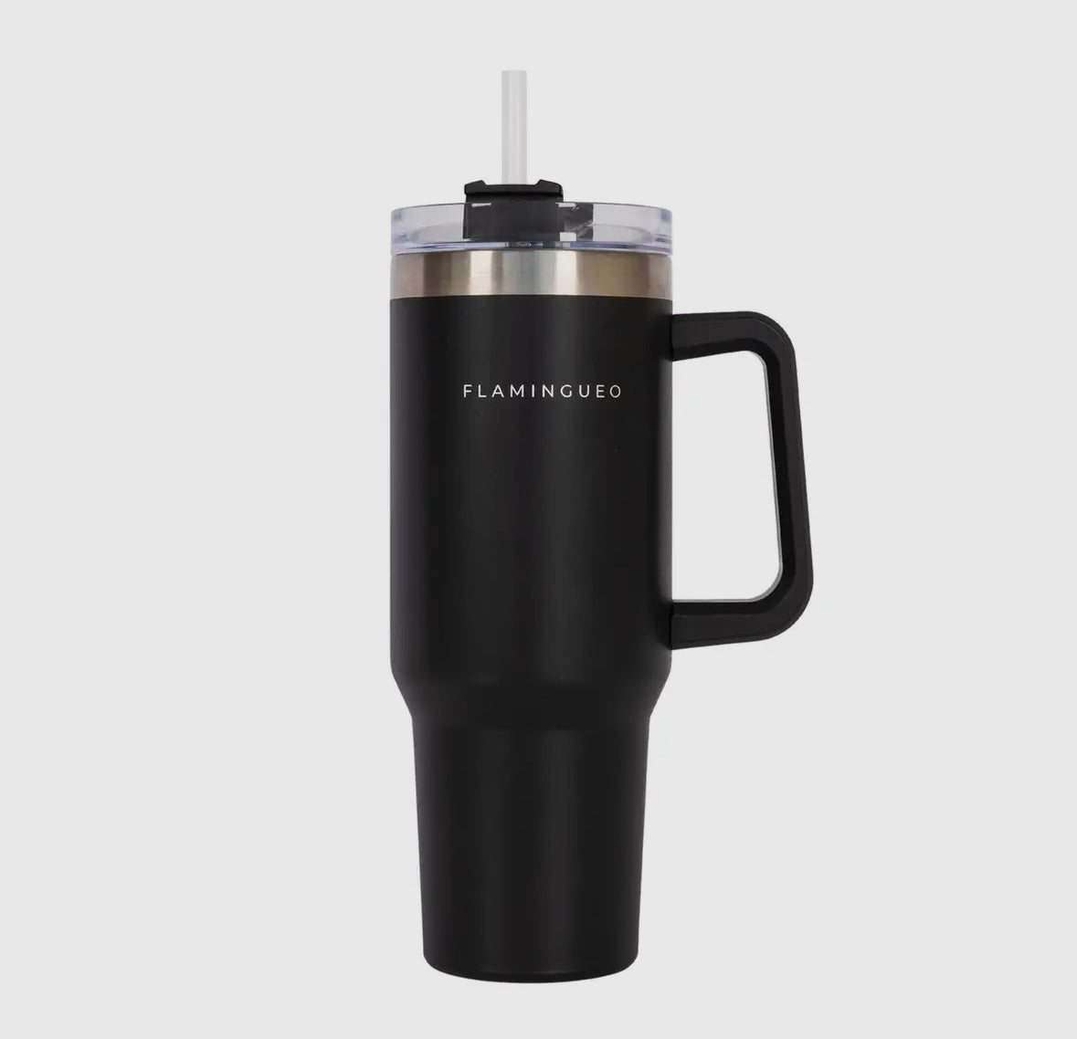 • Thermosflasche mit integriertem Strohhalm und Griff für einfachen Transport